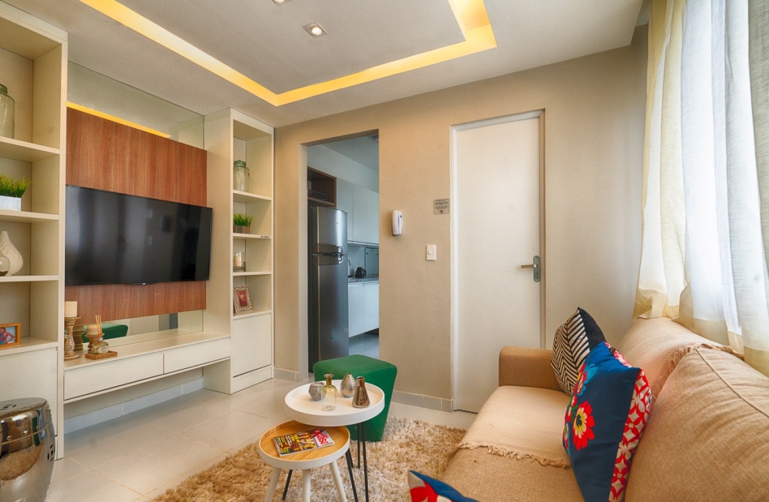O condomínio possui casas duplex de 2 e 3 quartos e casas térreas acessíveis de 2 quartos.