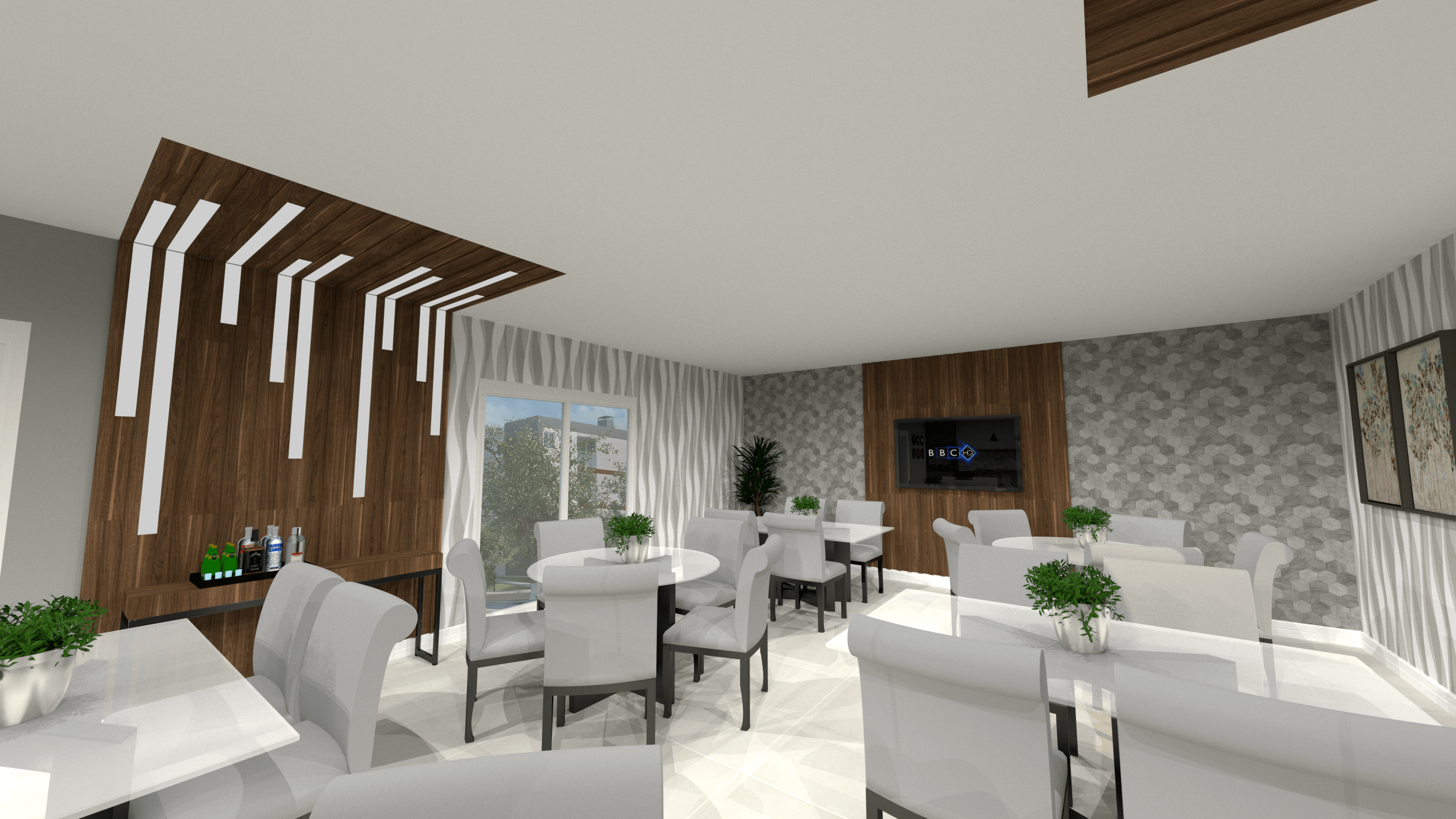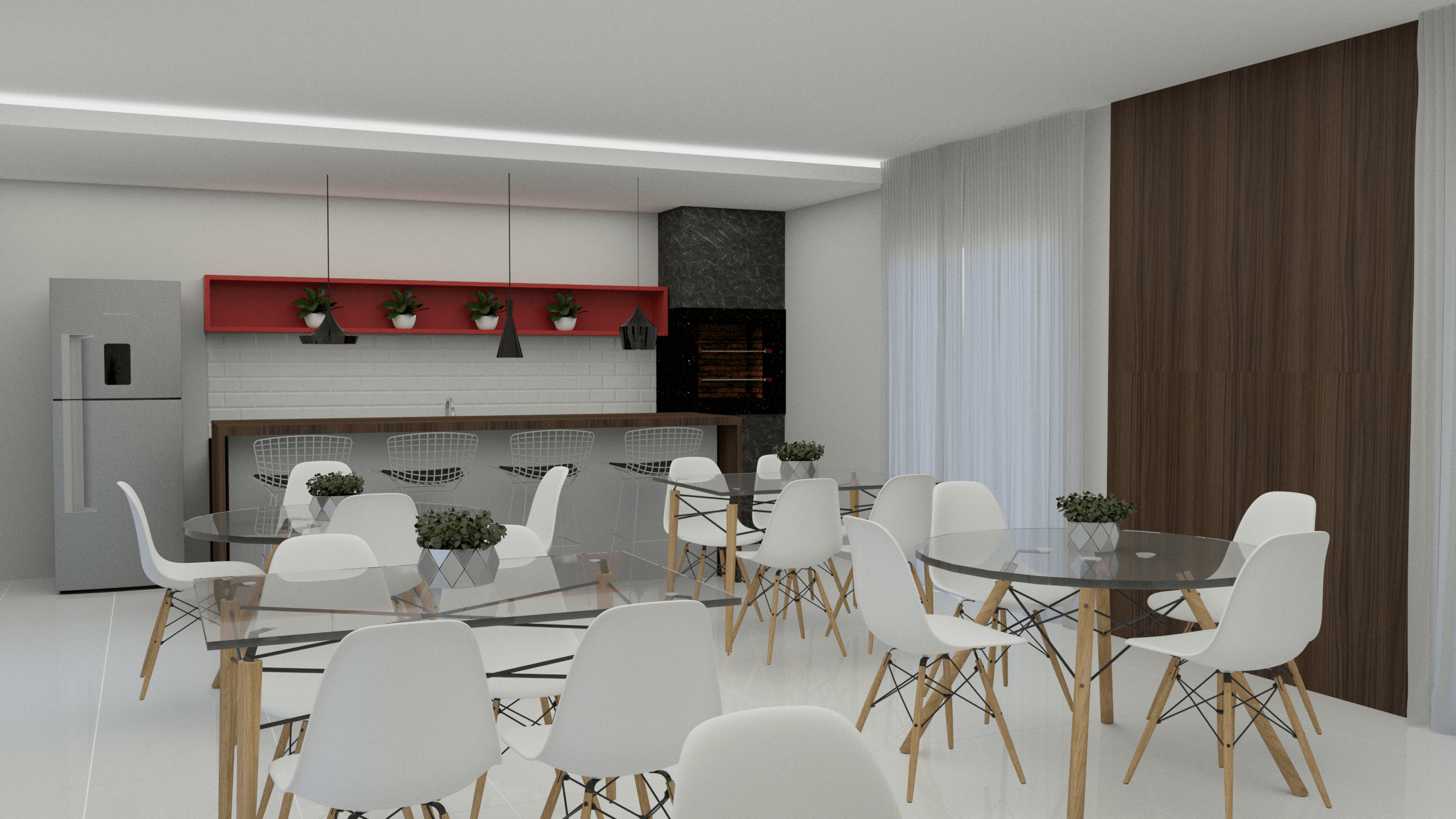 Apartamento de 47m², com dois quartos, cozinha, banheiro, sala de estar, sala de jantar, lavanderia e varanda gourmet com churrasqueira à carvão.